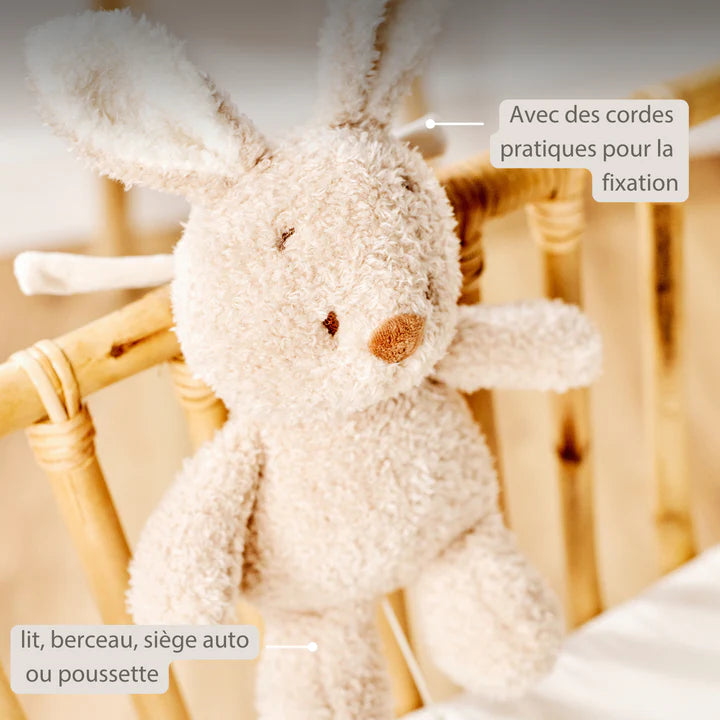 Apportez douceur, réconfort et sérénité aux premiers mois de votre bébé grâce à la peluche musicale lapin de Nattou. Avec son tissu teddy ultra doux, ses longues oreilles câlines et sa forme attendrissante, elle devient vite un compagnon rassurant au quotidien.