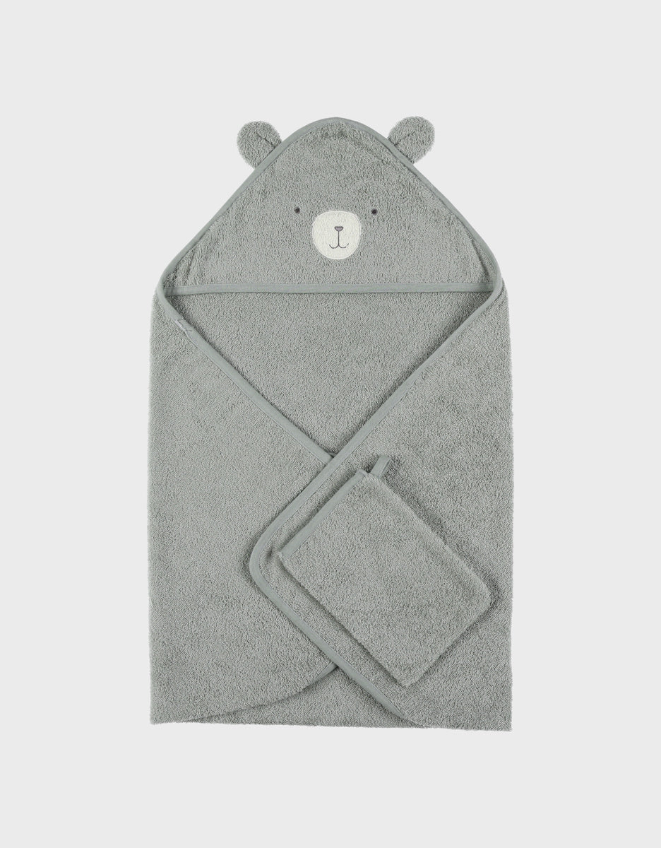 Ensemble : 1 cape de bain + 1 gant de toilette assorti