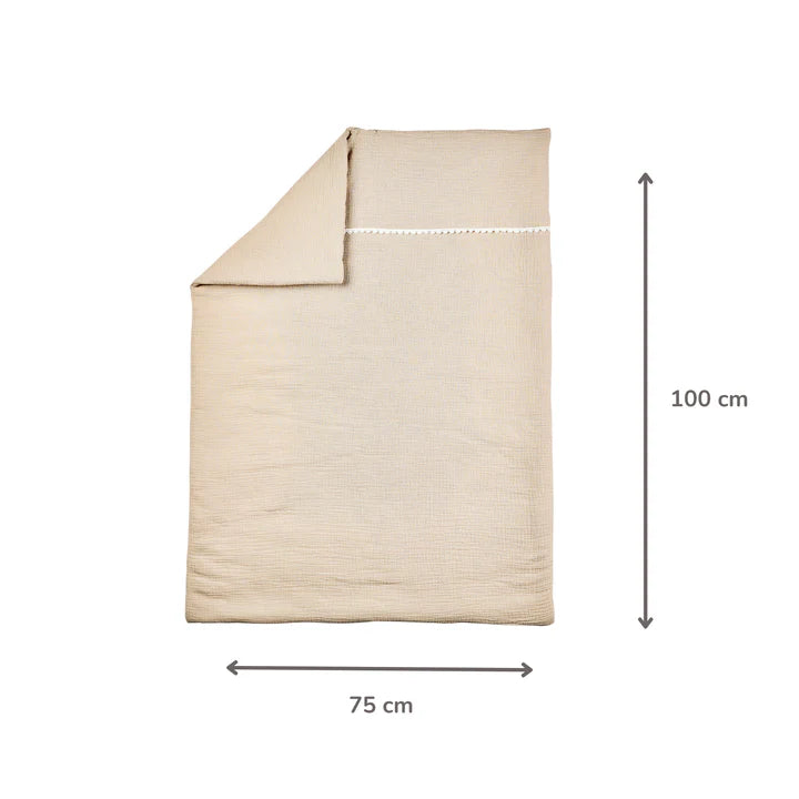 Confectionné en gaze de coton 100 %, il est à la fois respirant, léger et suffisamment enveloppant pour offrir une sensation de cocooning tout en régulant la température. Sa finition élégante sur les bords lui apporte une touche raffinée, parfaite pour compléter l’univers de bébé avec style.