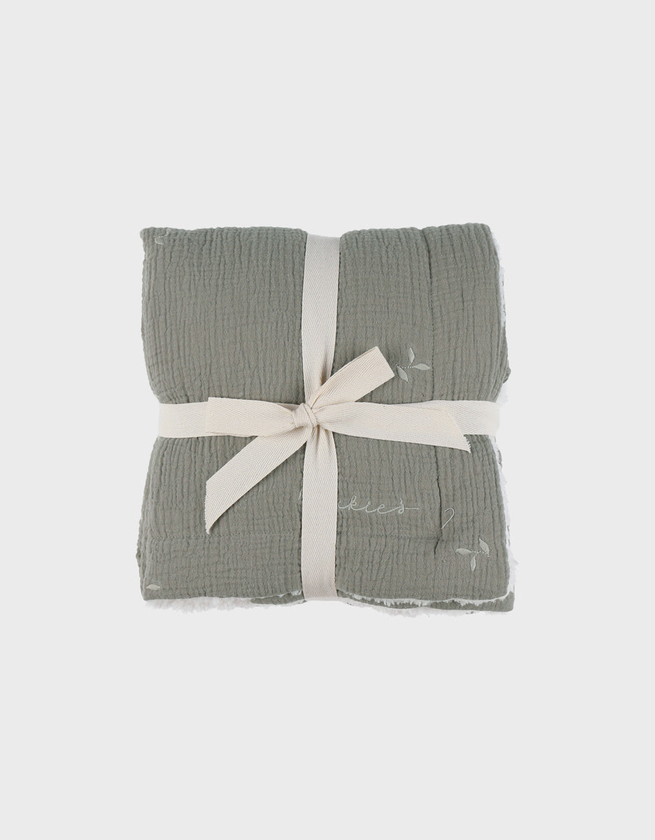 Elle se compose d’un côté en gaze de coton BIO vert, légère et respirante, et d’un côté en sherpa blanc, douce et moelleuse, pour garder bébé bien au chaud tout en délicatesse.