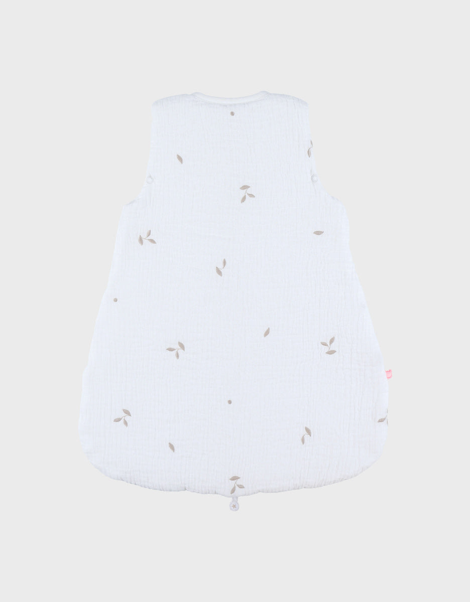 Pensée comme un cocon de douceur, cette gigoteuse 50cm enveloppe les nouveau-nés de 0 à 3 mois dans un écrin de chaleur et de légèreté. Sa teinte blanche intemporelle et ses broderies délicates inspirées de la nature en font un essentiel à la fois élégant et apaisant pour les premiers jours de bébé.