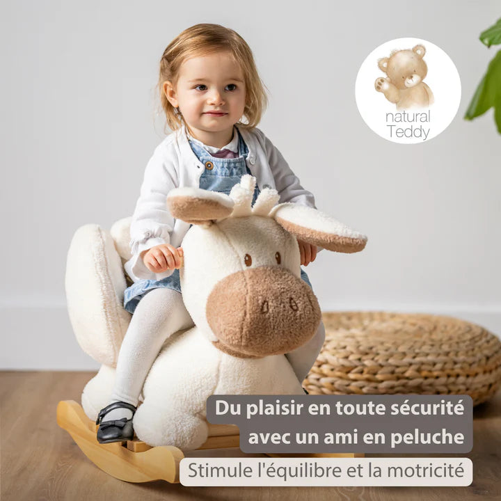 Issu de la collection Teddy, ce cheval à bascule enveloppe chaque moment d’une sensation de douceur et de confort, idéale pour les câlins comme pour les aventures ludiques.