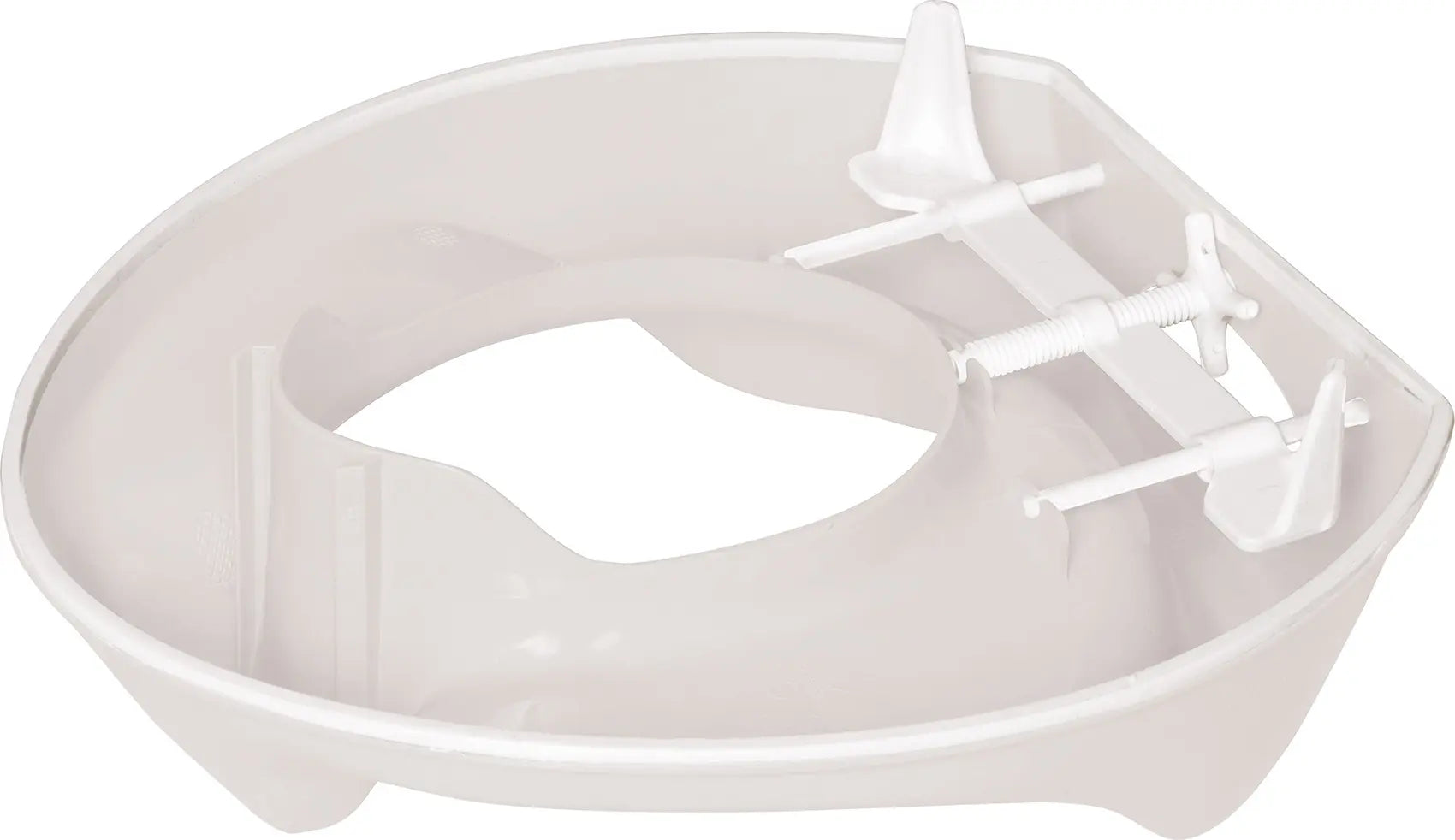 Réglable, antidérapant et compatible avec toutes les toilettes, il est confortable et se range à la verticale pour un gain de place. Dimensions : 33,5 × 31 × 11 cm.
