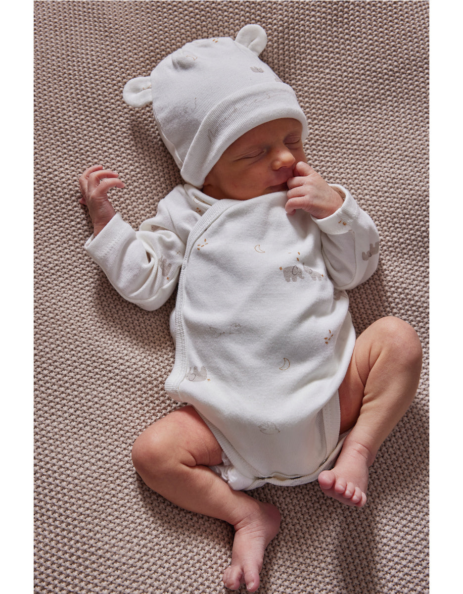• Habillage facilité : la forme croisée sur le devant permet d’ouvrir entièrement le body, rendant l’habillage simple et confortable, surtout pour les nouveau-nés.