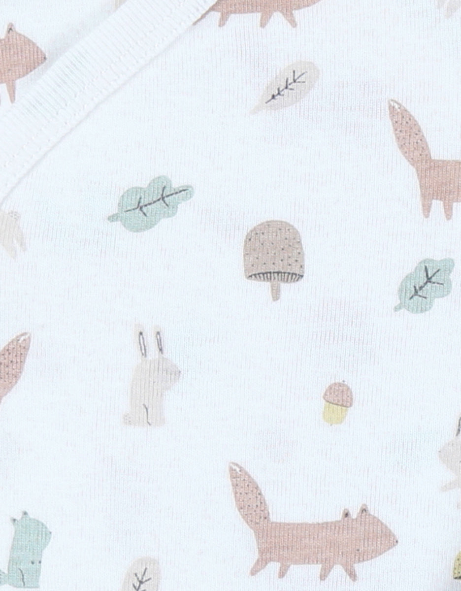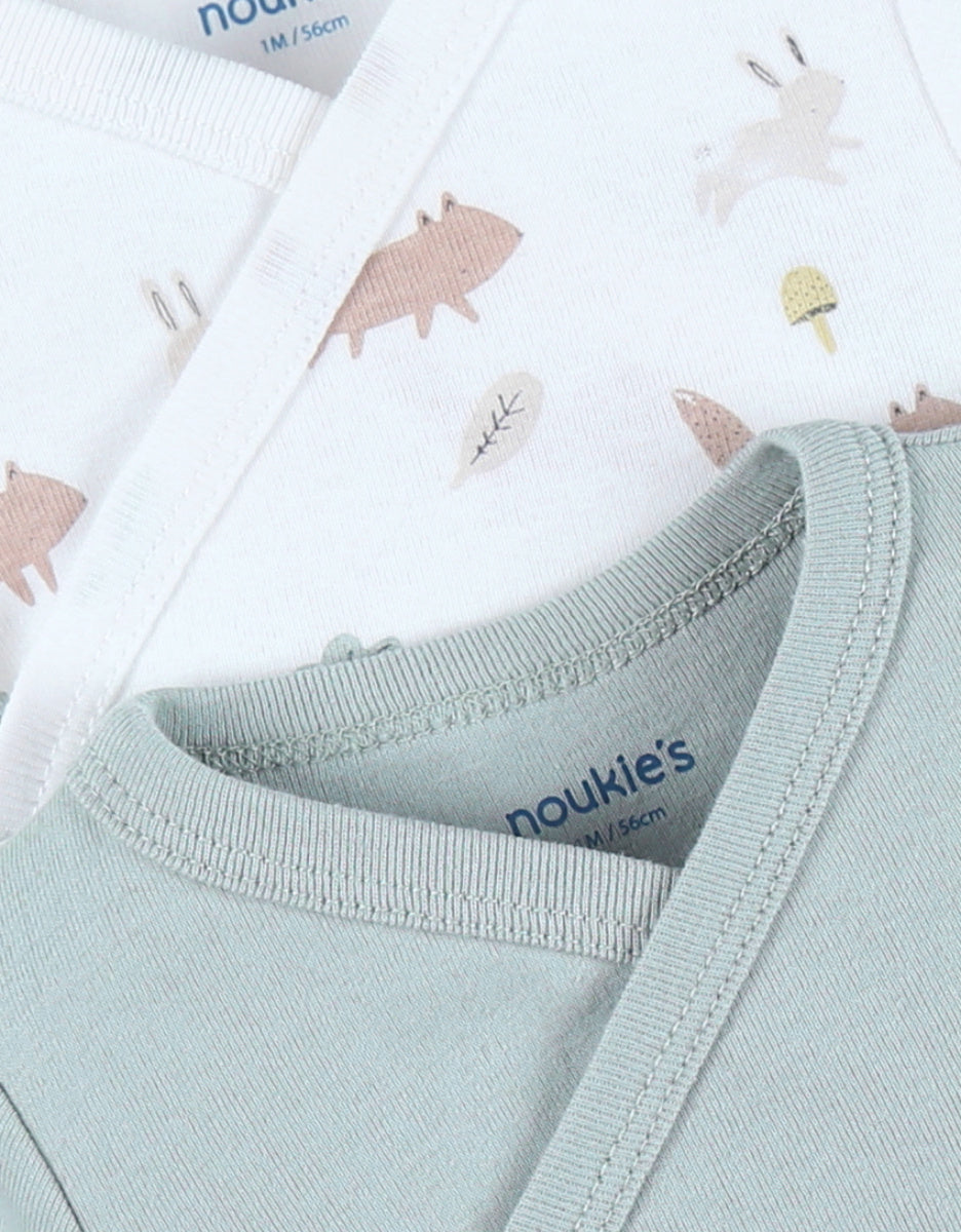 Le lot de 2 bodies croisés en coton doux Oeko-Tex : un indispensable du trousseau de naissance, alliant praticité, sécurité et douceur pour le bien-être de bébé.