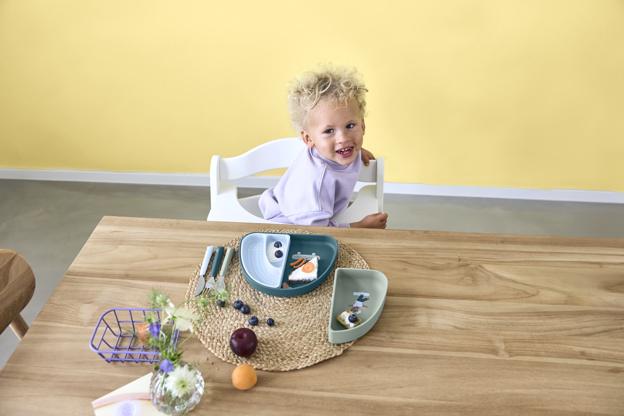 Les couverts Tiny Team allient design ludique et fonctionnalité pour rendre l’apprentissage des repas simple et amusant.