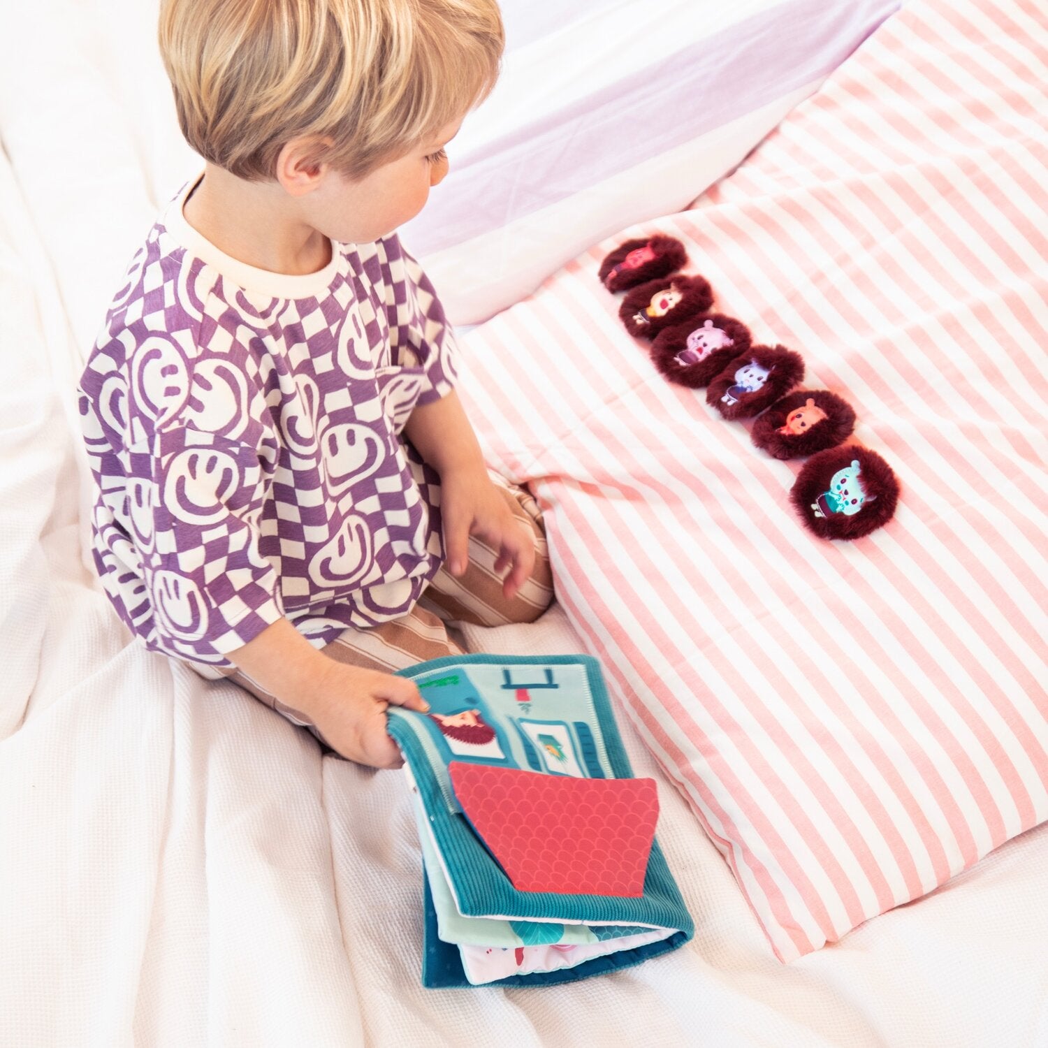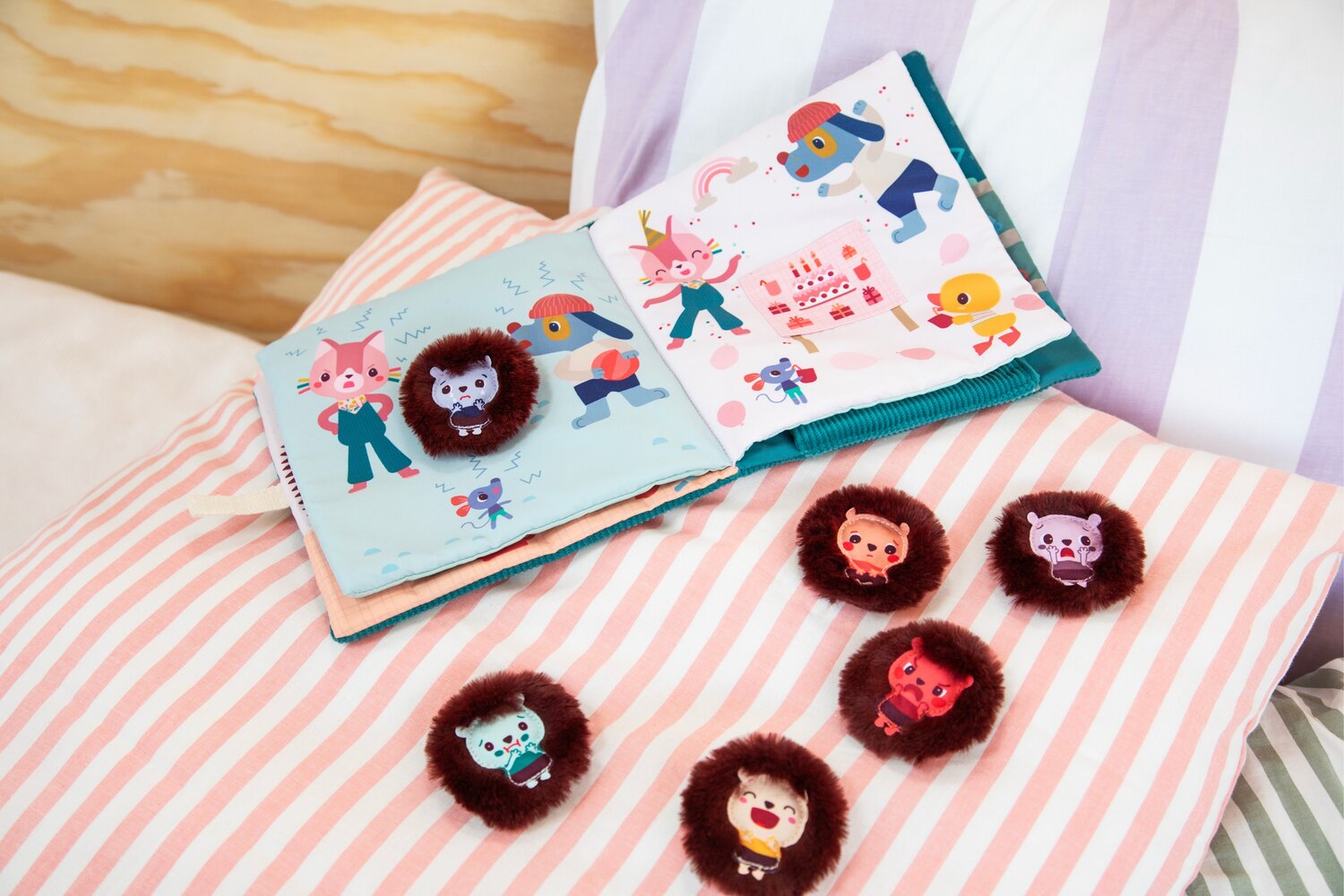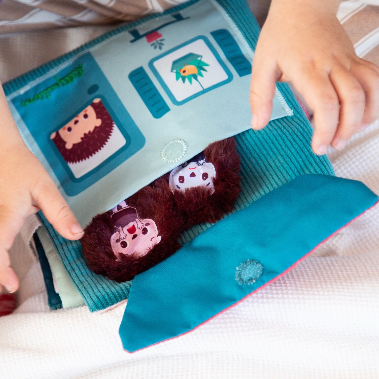 Aidez votre enfant à découvrir et comprendre ce qu’il ressent grâce à ce tendre livre sur les émotions enfant en tissu. Conçu comme un livre d’éveil interactif, il accompagne les tout-petits dans l’apprentissage des émotions à travers des scènes inspirées du quotidien.